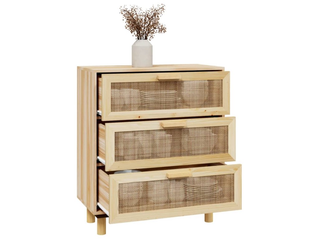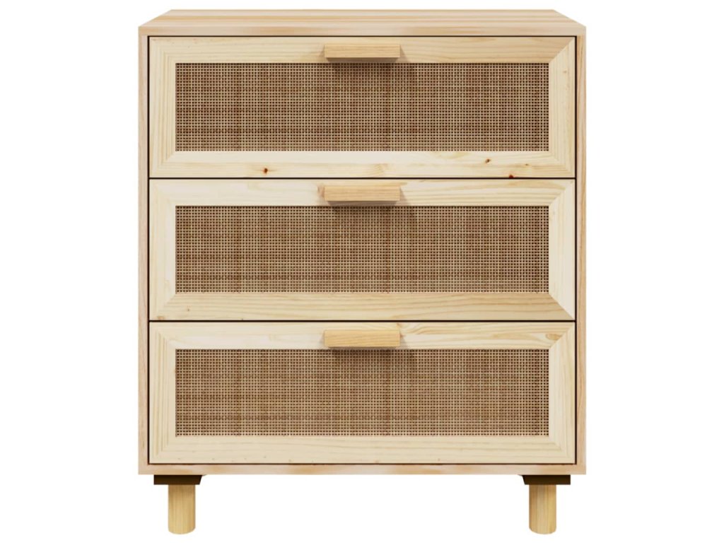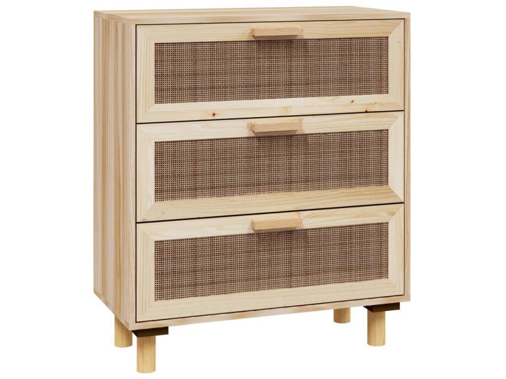vidaXL Komoda hnedá 60x30x70 cm masívna borovica a prírodný ratan