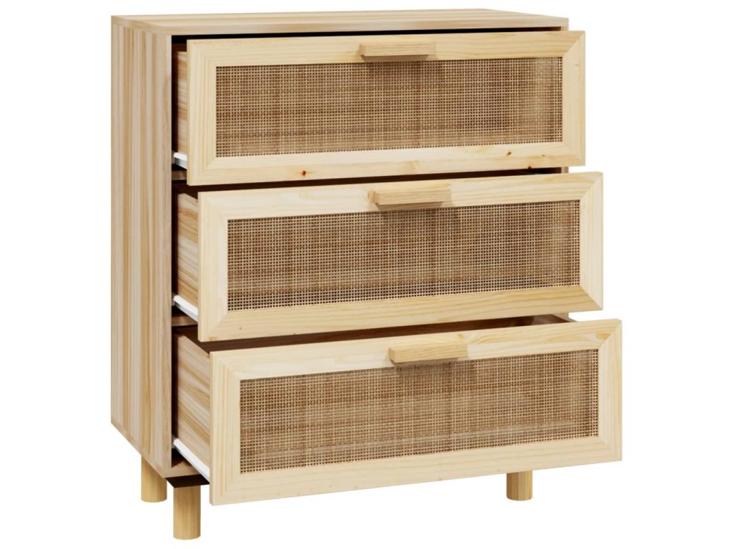 - Dostatok úložného priestoru: Skrinka vybavená 3 zásuvkami ponúka dostatok úložného priestoru na uskladnenie rôznych každodenných potrieb dobre organizovaných a na dosah ruky. Navyše dizajn prírodného ratanu dodáva extra krásu.
