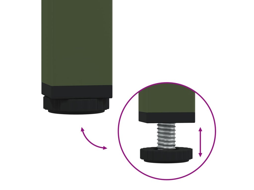 - Nastaviteľné skrutkové nožičky: Tento vonkajší stôl je vybavený štyrmi nastaviteľnými skrutkovacími nohami, ktoré vyrovnávajú nerovnosti podlahy a zabezpečujú stabilitu a rovnováhu.