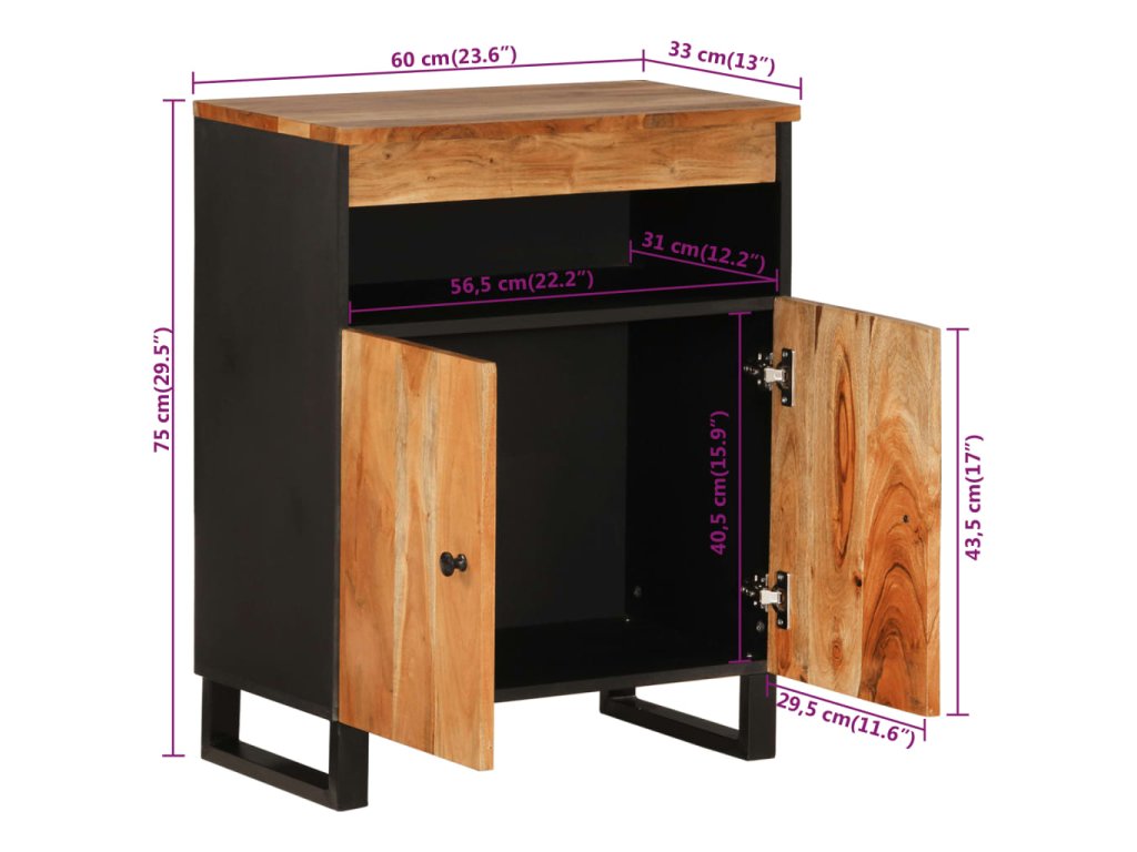 - Materiál: Akáciový masív s prírodnou povrchovou úpravou, železo
