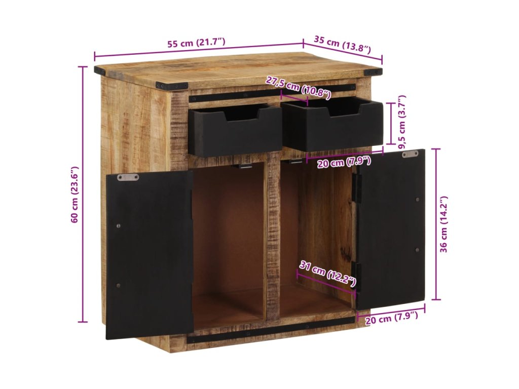 vidaXL Komoda s 2 zásuvkami 55x35x60 cm masívny mangovník