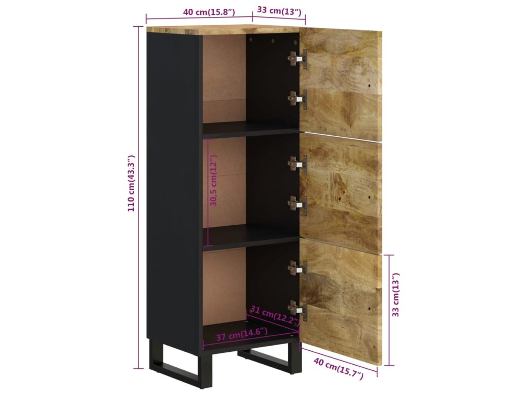 - Masívne mangovníkové drevo: Komoda je vyrobená z masívneho mangovníkového dreva, čo je tvrdé drevo s bohatou štruktúrou. Masívne mangovníkové drevo nielenže unesie aj vyššiu hmotnosť, ale odoláva aj opotrebovaniu časom.