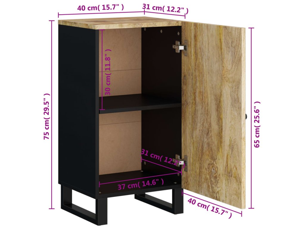 - Masívne mangovníkové drevo: Táto skrinka je vyrobená z masívneho mangovníkového dreva, čo je tvrdé drevo s bohatou štruktúrou. Masívne mangovníkové drevo nielenže unesie aj vyššiu hmotnosť, ale odoláva aj opotrebovaniu časom.