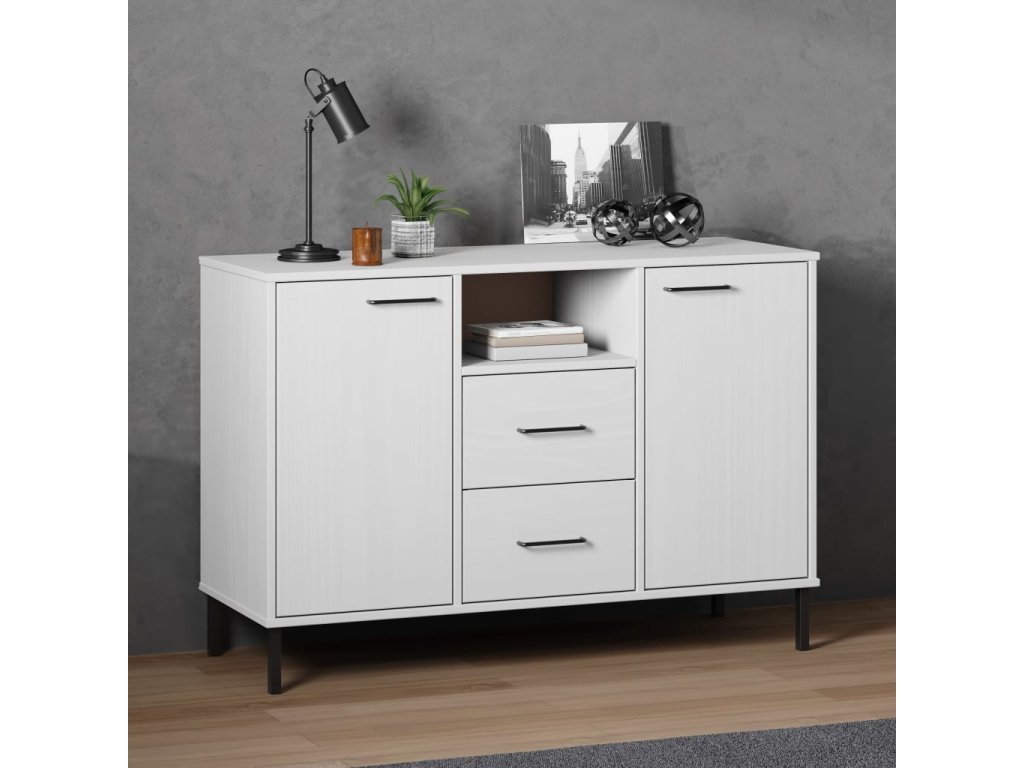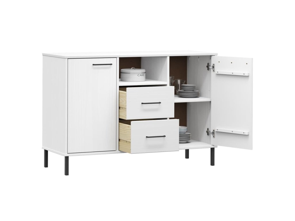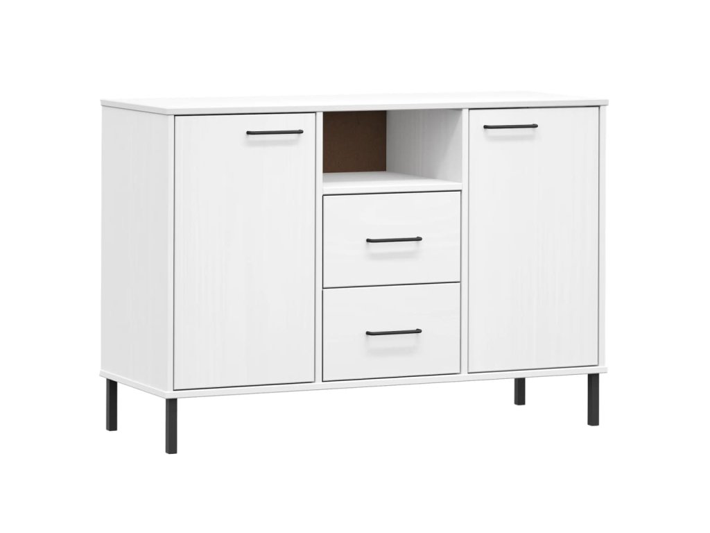 vidaXL Komoda s kovovými nohami biela 113x40x77 cm masívne drevo OSLO