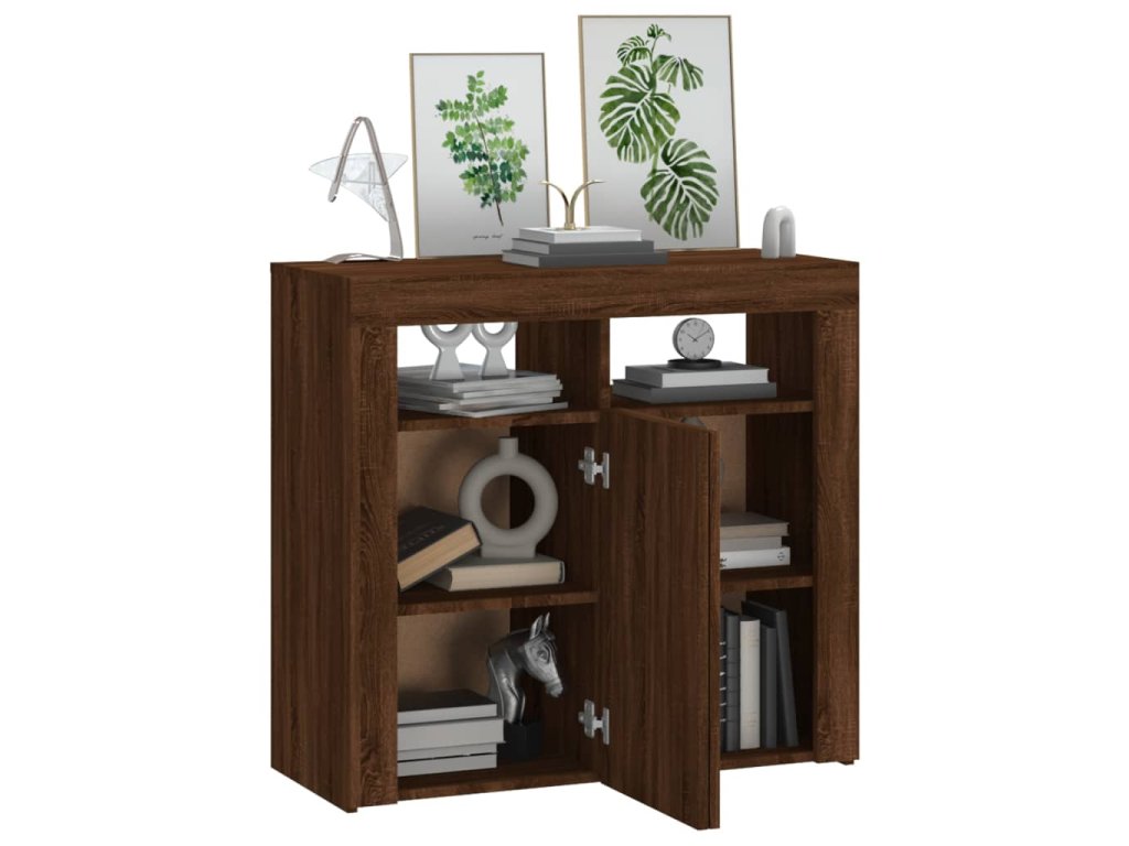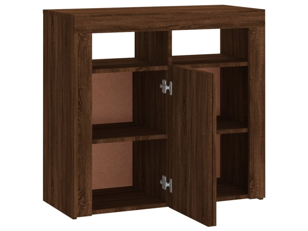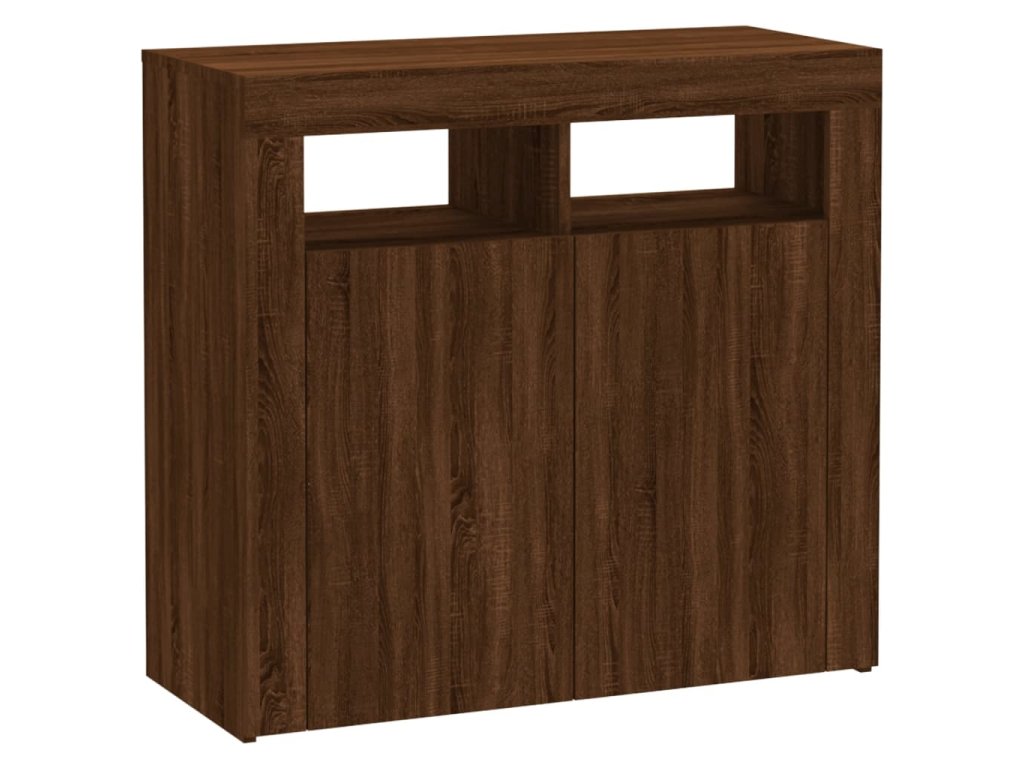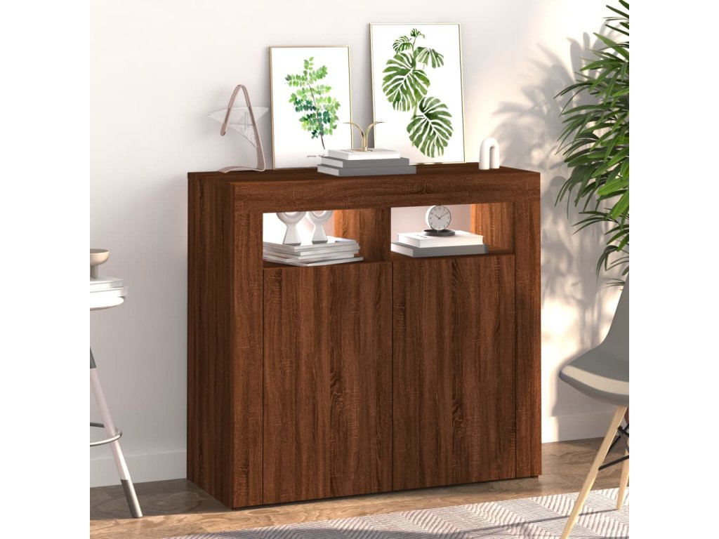 - Praktický materiál: Spracované drevo je mimoriadne kvalitné s hladkým povrchom a vyznačuje sa pevnosťou, stabilitou a odolnosťou proti vlhkosti. LED Príborník je vyrobený z upraveného dreva a ľahko sa čistí.