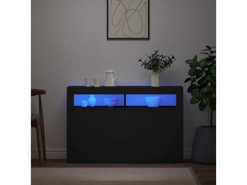 - RGB LED svetlá: Bufetová skrinka je vybavená žiarivými RGB LED svetlami. Vďaka rôznym nastaveniam môžete jednoducho zmeniť farbu svetiel a dokonca nastaviť aj ich automatické prispôsobenie. Tieto LED svetlá nielenže zvýrazňujú moderný vzhľad skrinky, ale prispievajú aj k jej módnemu vzhľadu.