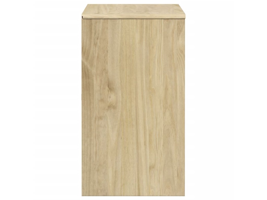 - Borovicový masív: Borovicový masív je krásny prírodný materiál. Borovicové drevo má rovnú kresbu a nachádzajú sa na ňom uzly, ktoré tomuto materiálu dodávajú charakteristický rustikálny vzhľad. Úložná skrinka je vyrobená z borovicového masívu, vďaka čomu je pevná a stabilná.