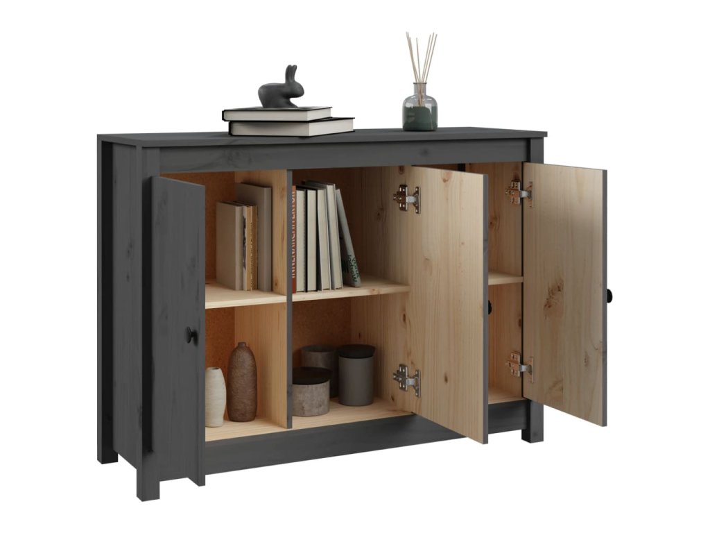 - Masívne borovicové drevo: Masívne borovicové drevo je krásny prírodný materiál. Borovicové drevo má rovnú štruktúru a uzly dodávajú materiálu jeho typický rustikálny vzhľad. Táto komoda je vyrobená z masívneho dreva pre extra stabilitu.