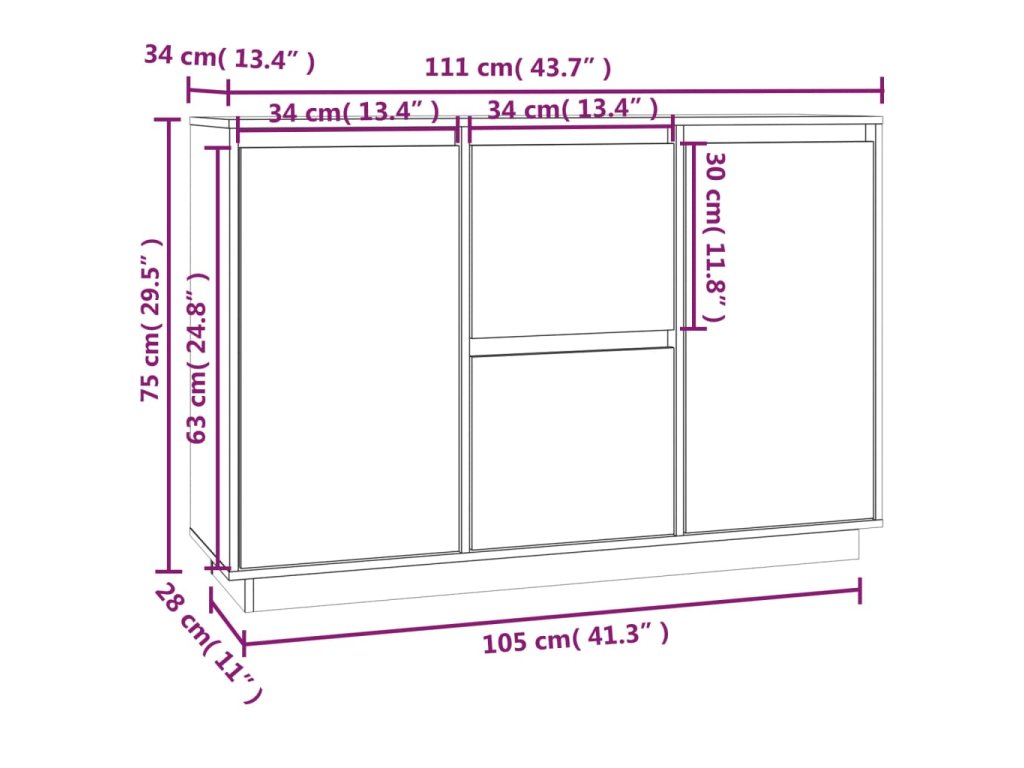 - Rozmery: 111 x 34 x 75 cm (Š x H x V)