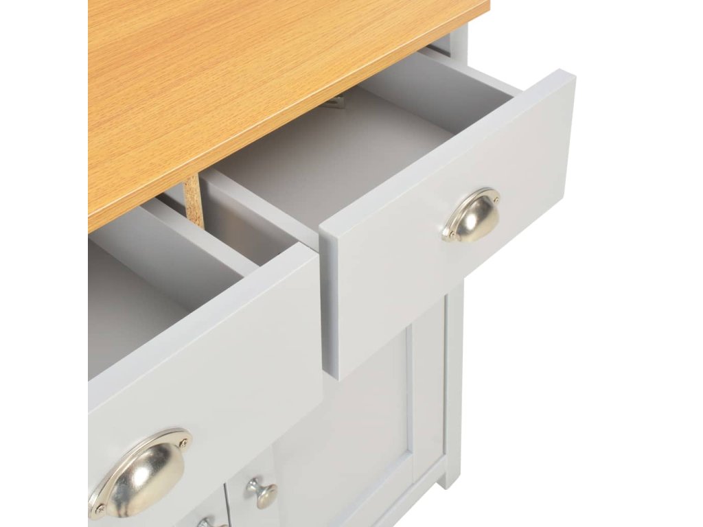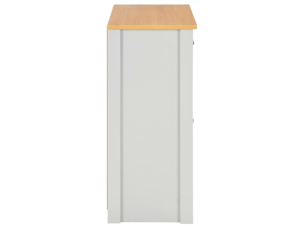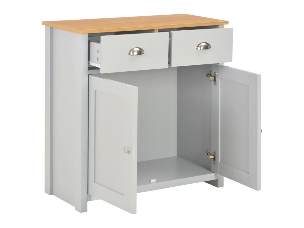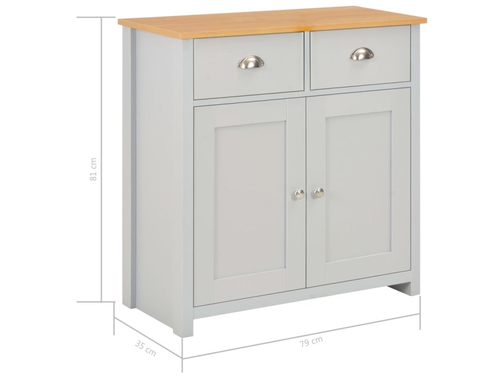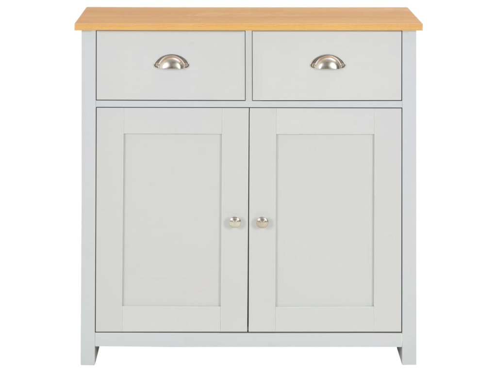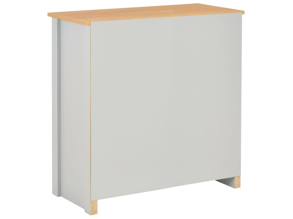 Komoda je vyrobená z kompozitného dreva s melamínom, a tak je mimoriadne stabilná a trvácna. Pevná vrchná doska je ako stvorená na vystavenie dekoratívnych predmetov či váz alebo kvetináčov. Skrinka s 2 zásuvkami a 2 dvierkami poskytuje množstvo úložného priestoru na prehľadné odkladanie rôznych predmetov. Môžete ju umiestniť aj do chodby, kde poslúži ako konzolová skrinka.