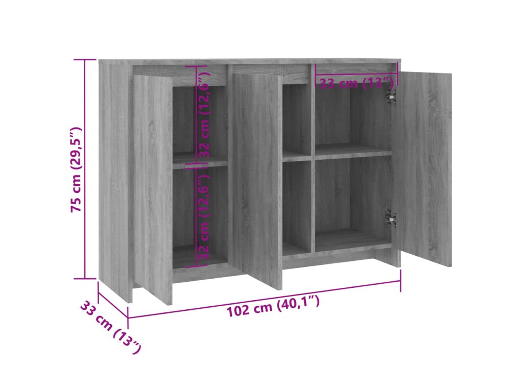 vidaXL Komoda sivý dub sonoma 102x33x75 cm drevotrieska