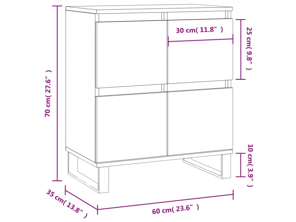 - Železné nohy: Železné nohy bočnej skrinky zaisťujú pevnosť a stabilitu.