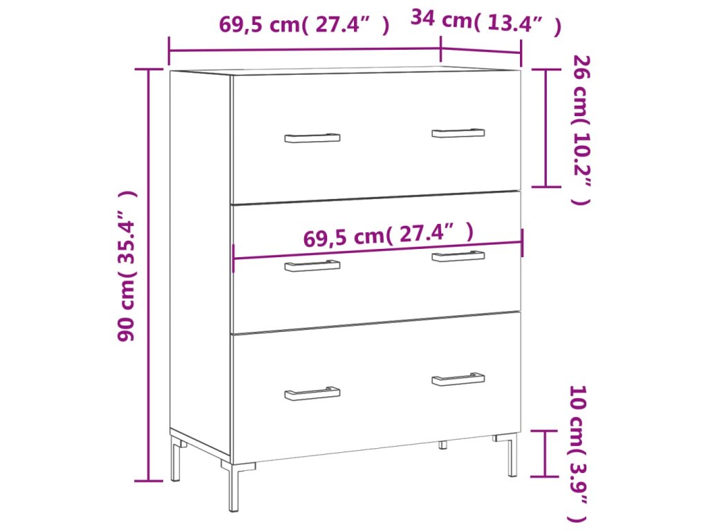 - Rozmery: 69,5 x 34 x 90 cm (Š x H x V)