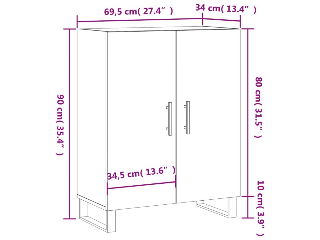 vidaXL Komoda sivý dub sonoma 69,5x34x90 cm kompozitné drevo