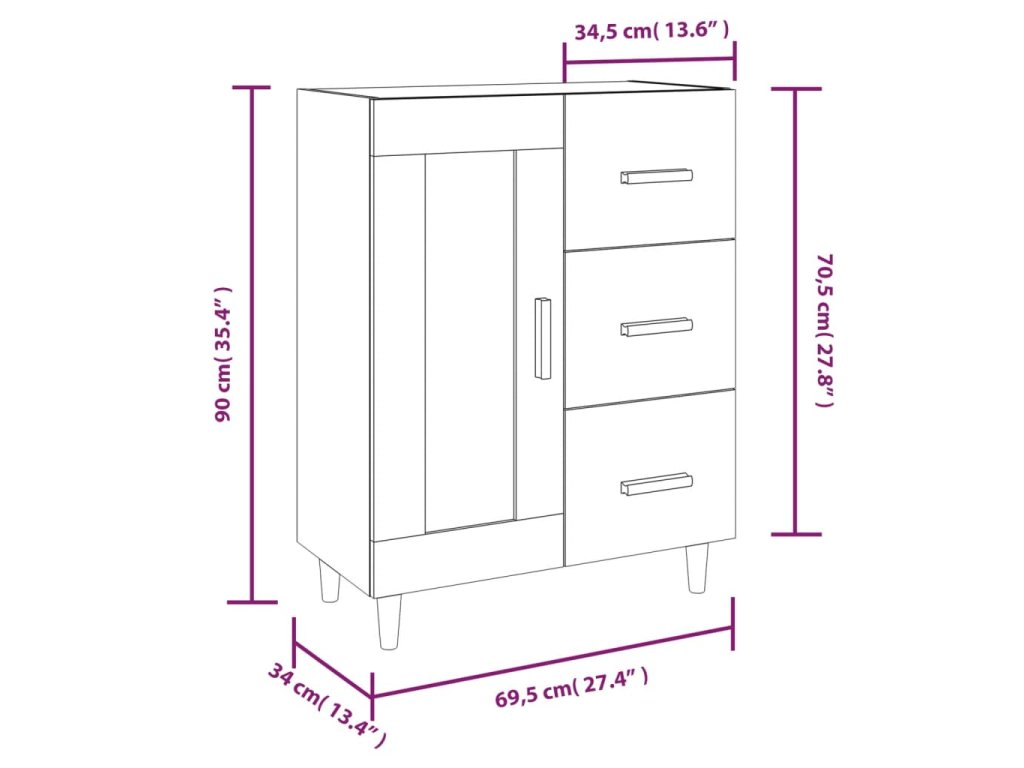 vidaXL Komoda sivý dub sonoma 69,5x34x90 cm spracované drevo