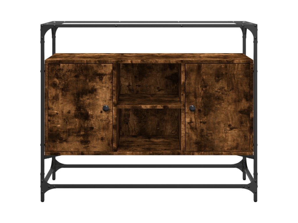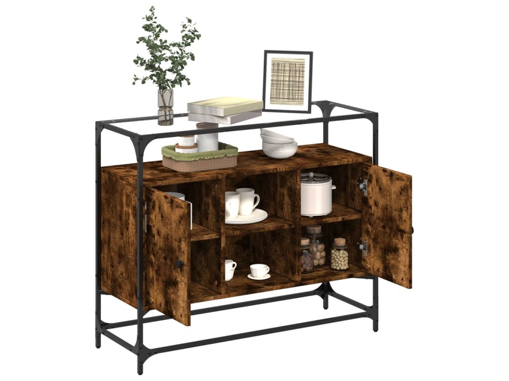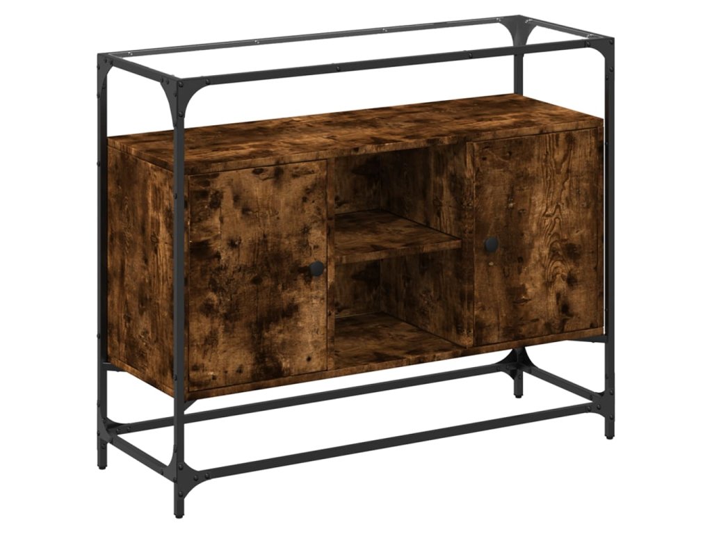vidaXL Komoda sklenená doska dymový dub 98x35x81 cm kompozitné drevo
