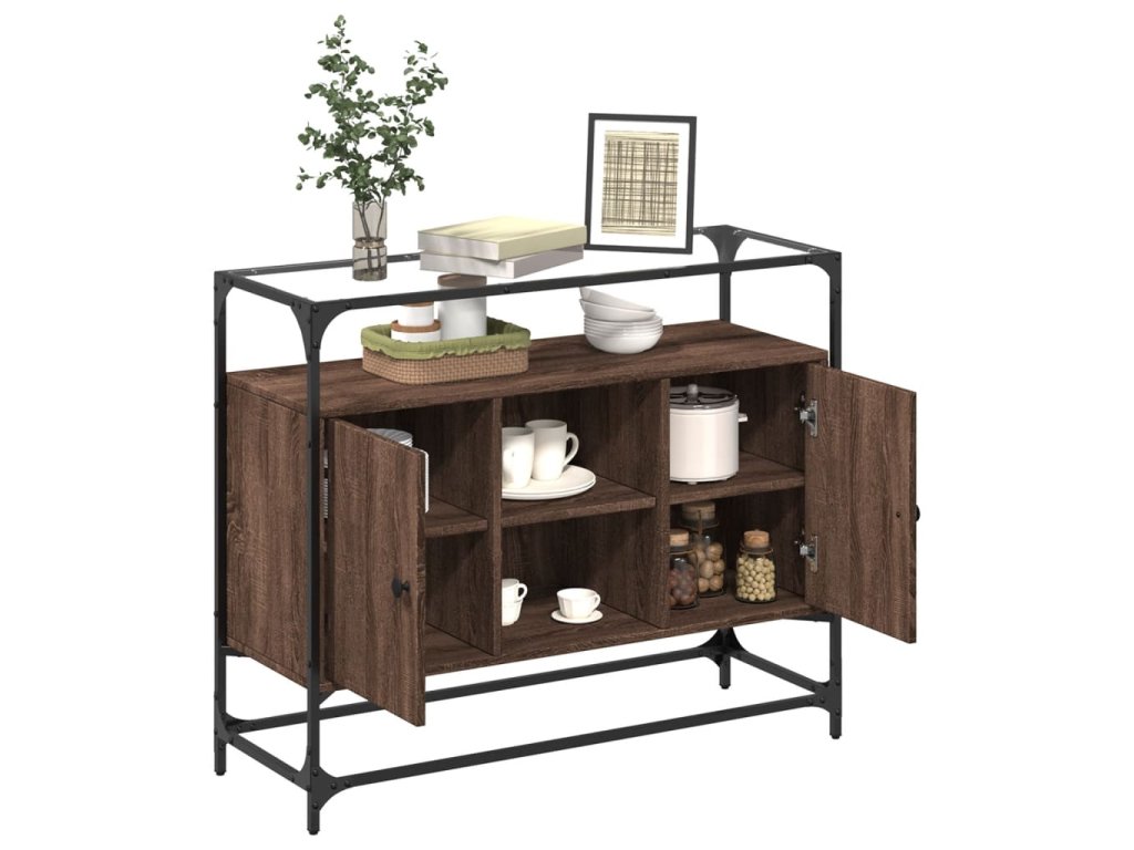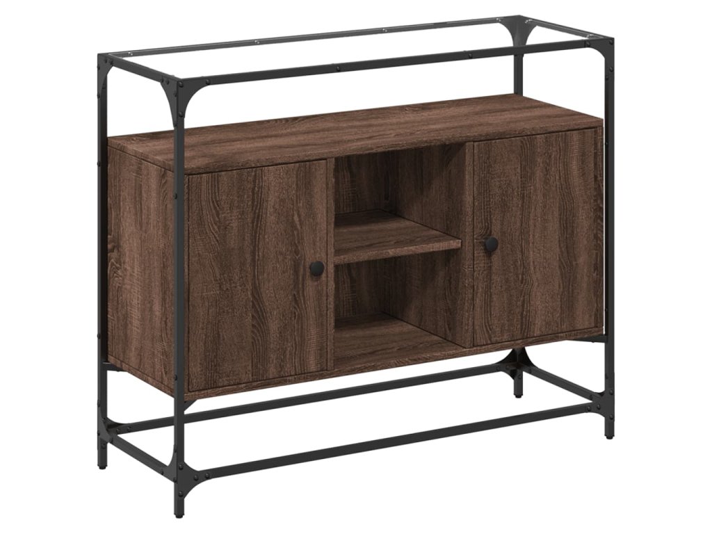 vidaXL Komoda sklenená doska hnedý dub 98x35x81 cm kompozitné drevo