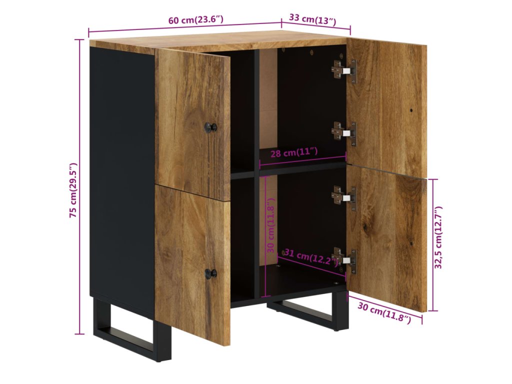 vidaXL Komoda so 4 dvierkami 60x33x75 cm masívny mangovník
