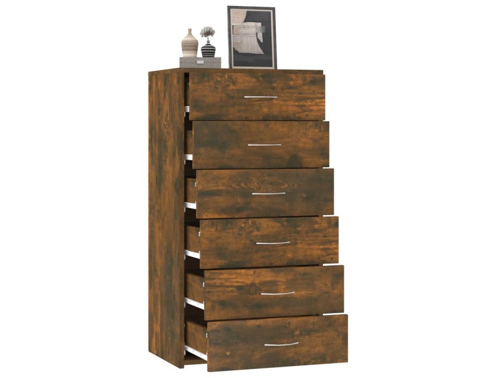 vidaXL Komoda so 6 zásuvkami dymový dub 50x34x96 cm spracované drevo