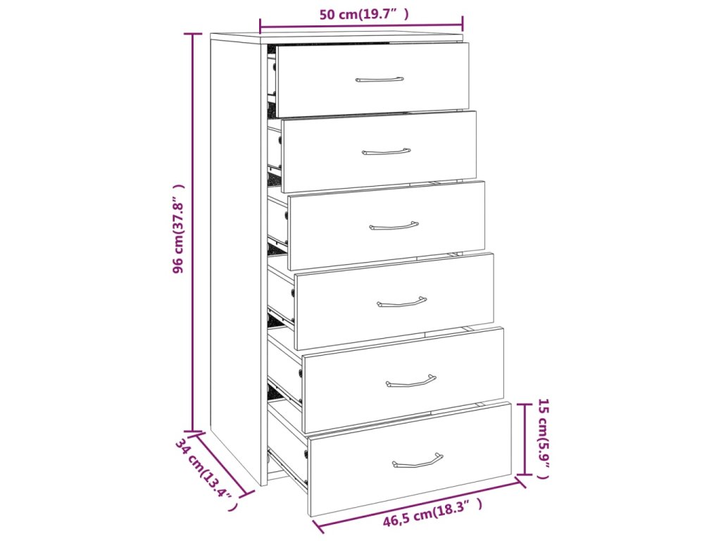 vidaXL Komoda so 6 zásuvkami sivá sonoma 50x34x96 cm spracované drevo