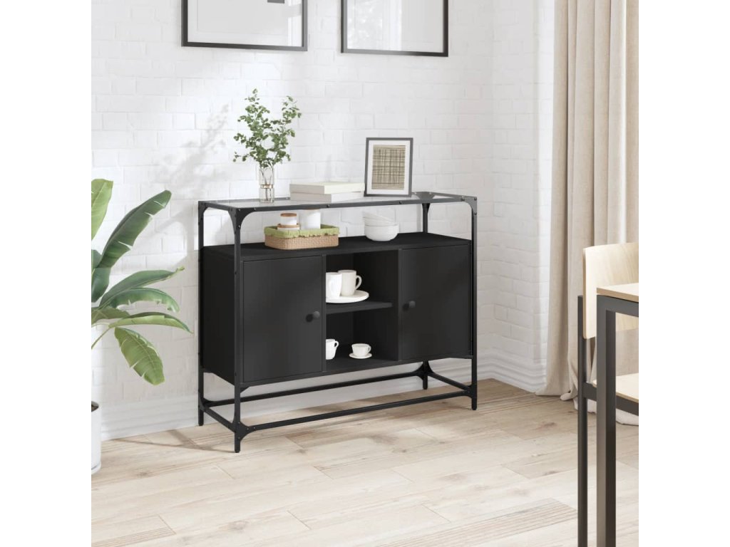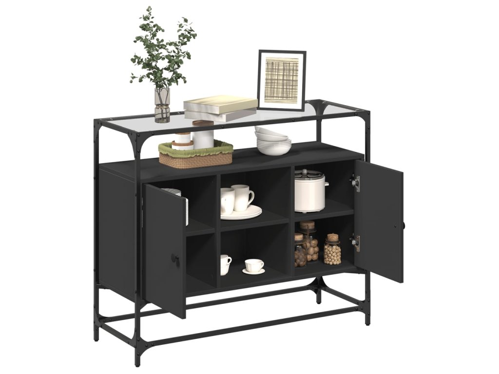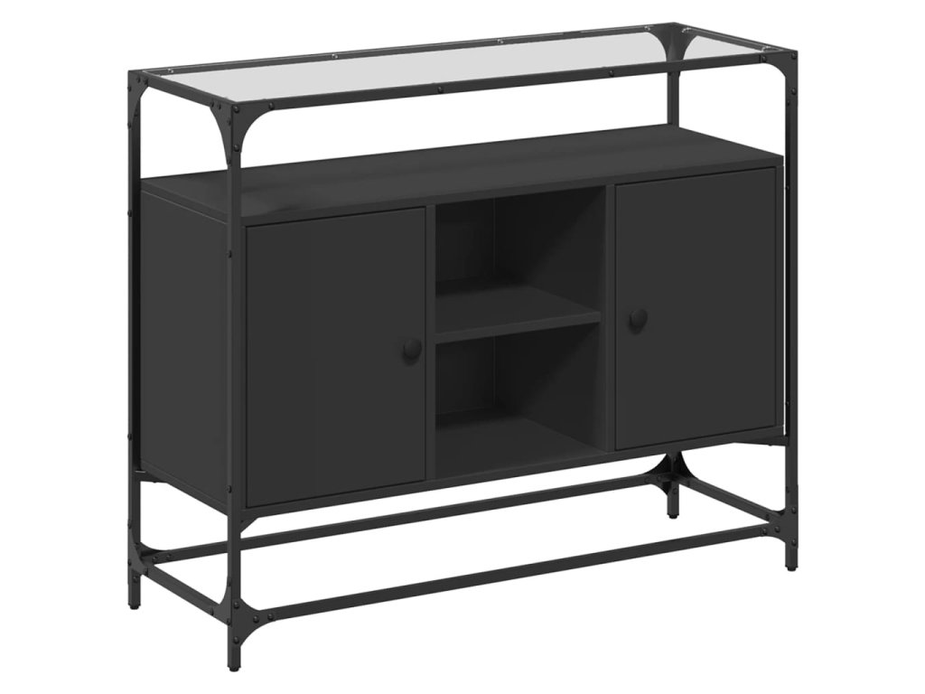 vidaXL Komoda so sklenenou doskou čierna 98x35x81 cm kompozitné drevo