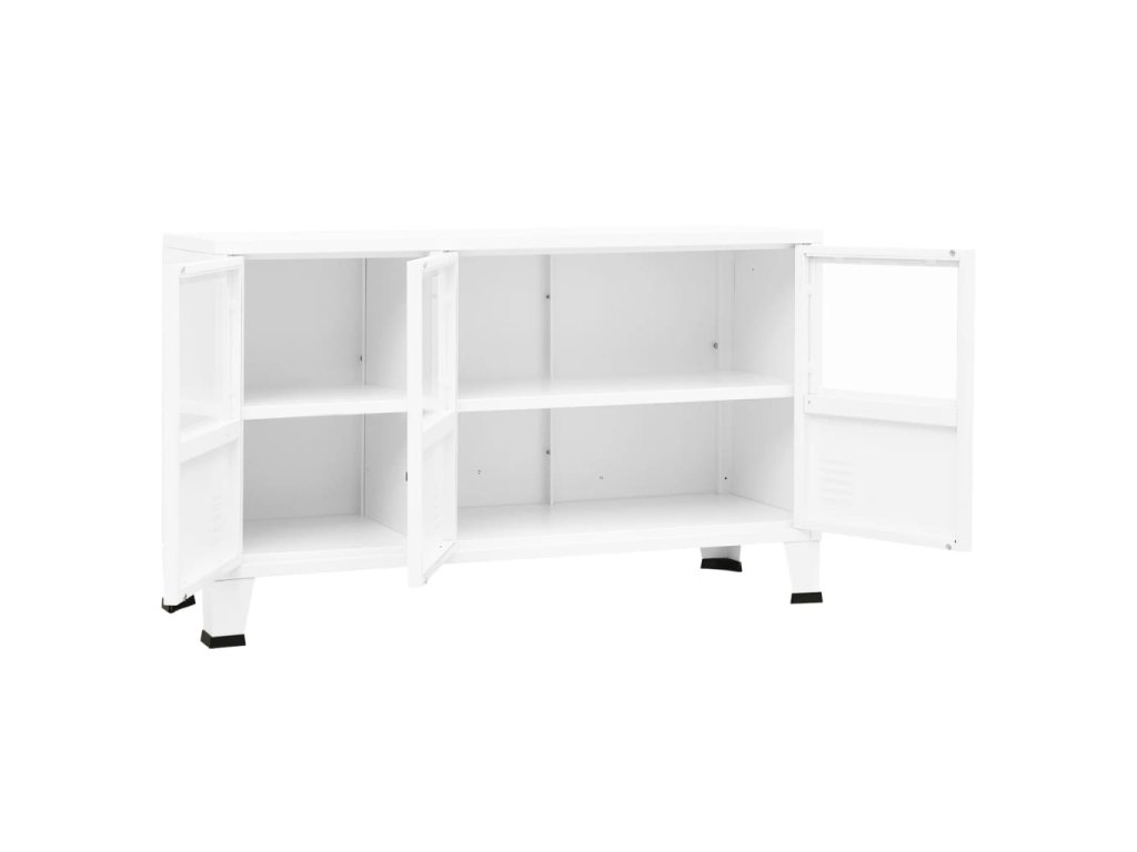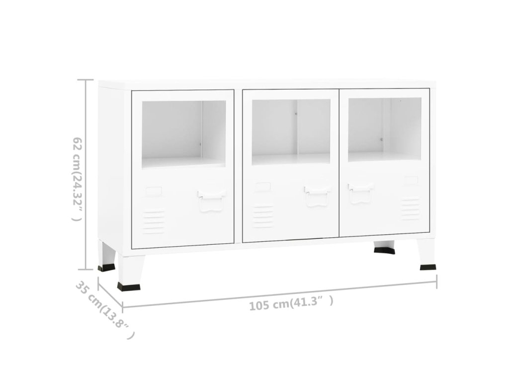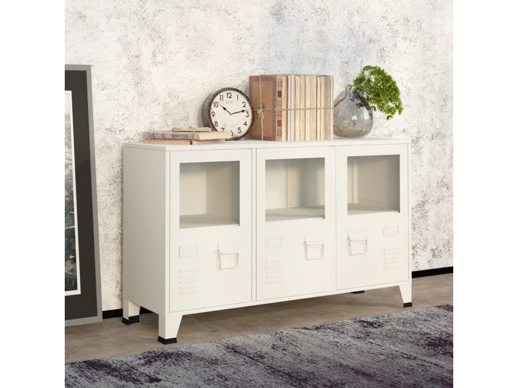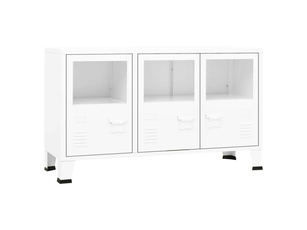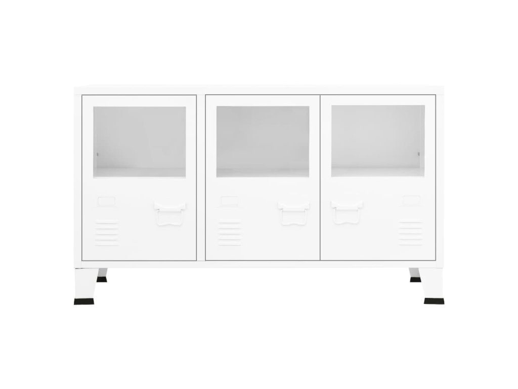 vidaXL Komoda v priemyselnom štýle biela 105x35x62 cm oceľ a sklo