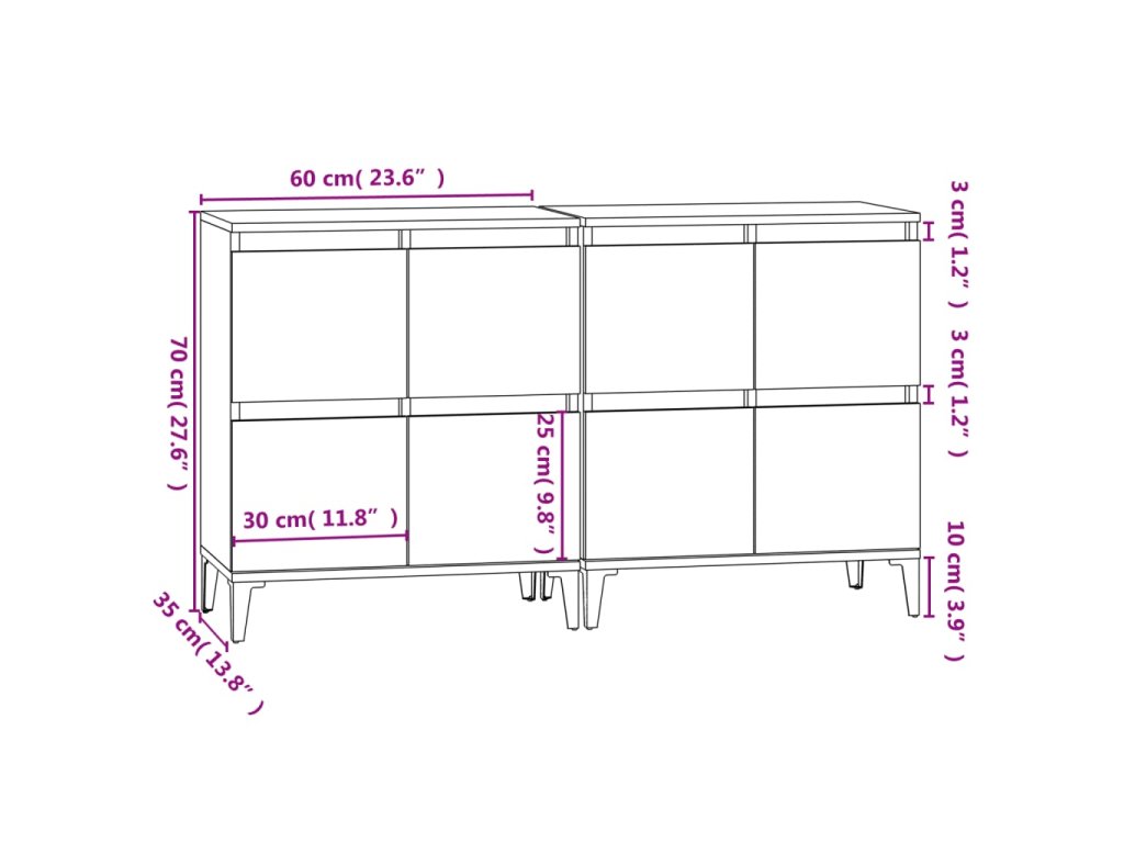 vidaXL Komody 2 ks betónovo sivé 60x35x70 cm kompozitné drevo