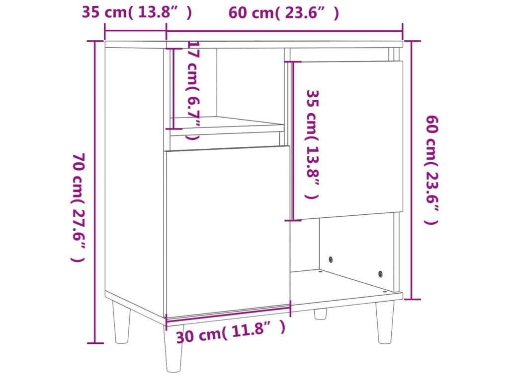 vidaXL Komody 2 ks dymový dub 60x35x70 cm kompozitné drevo
