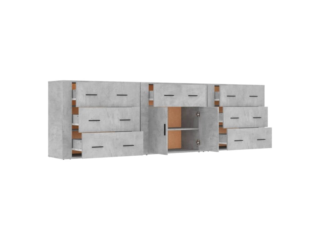 vidaXL Komody 3 ks betónovo sivé spracované drevo