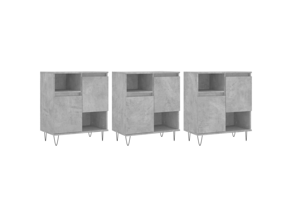 vidaXL Komody 3 ks betónovo sivé spracované drevo
