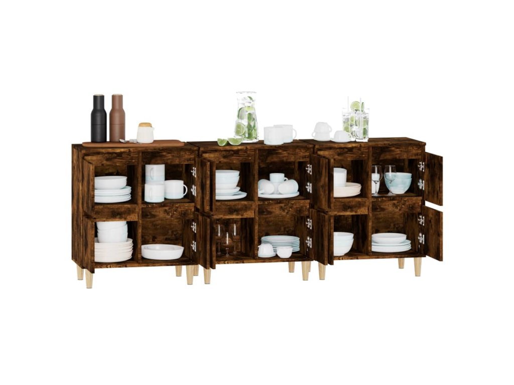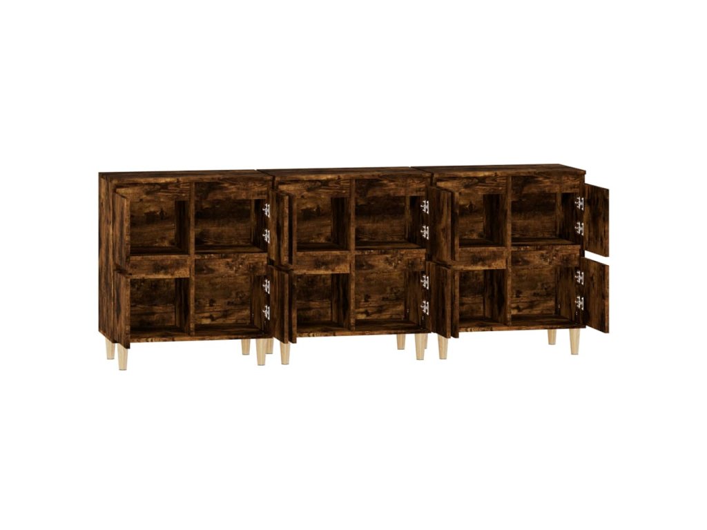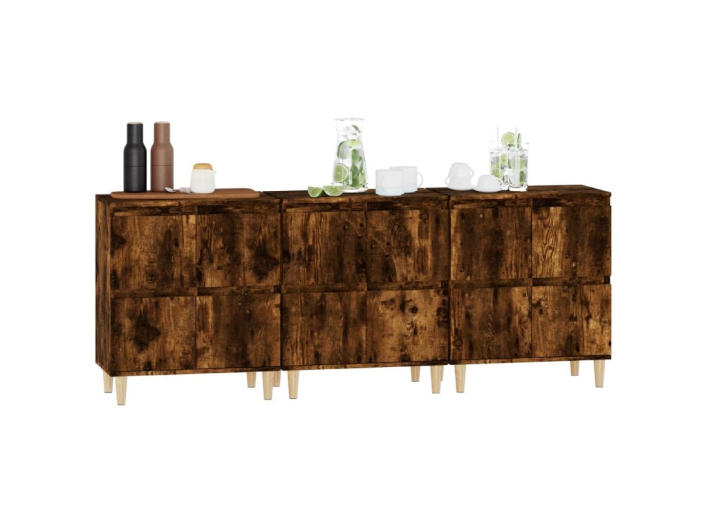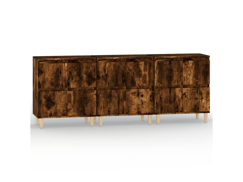 vidaXL Komody 3 ks dymový dub 60x35x70 cm kompozitné drevo