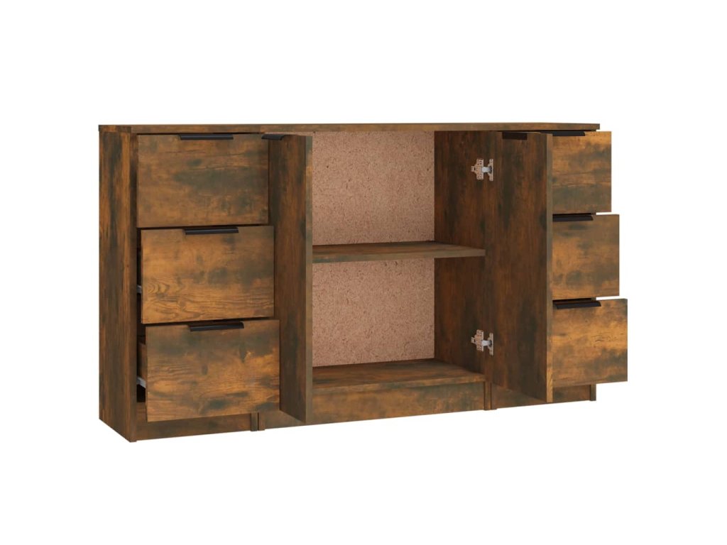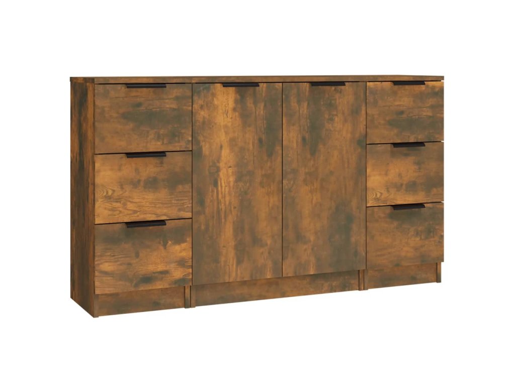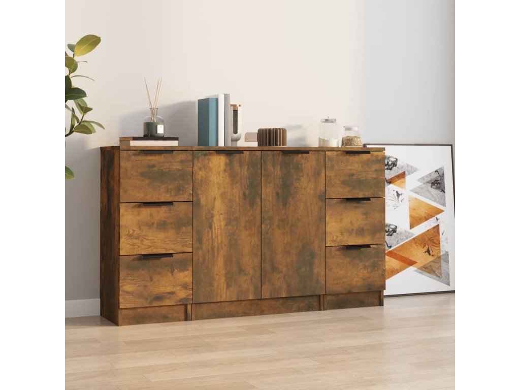vidaXL Komody 3 ks dymový dub spracované drevo