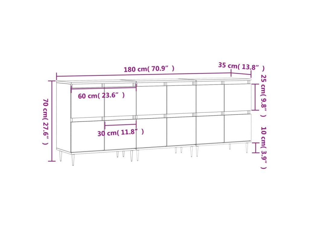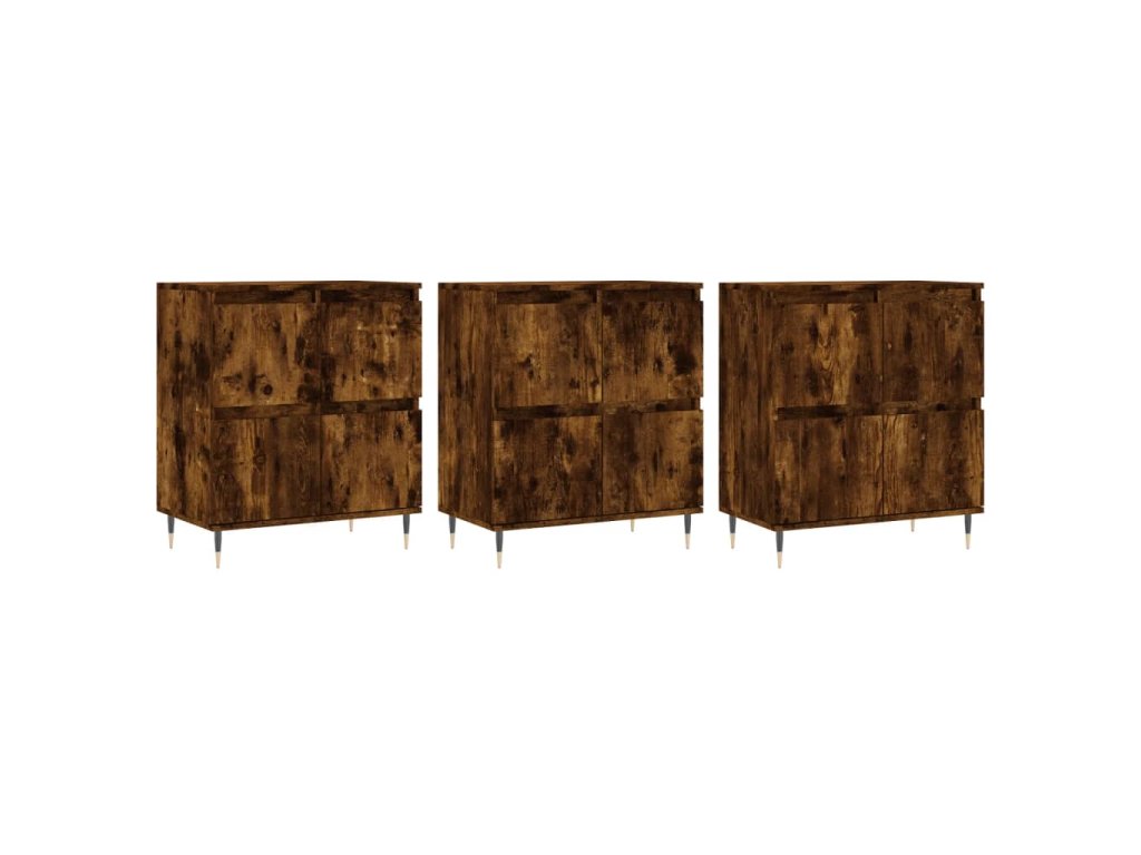 vidaXL Komody 3 ks dymový dub spracované drevo