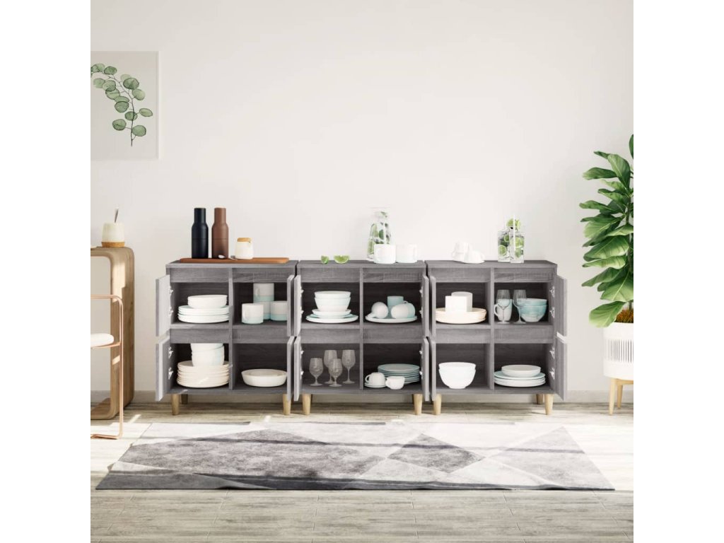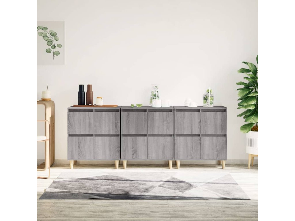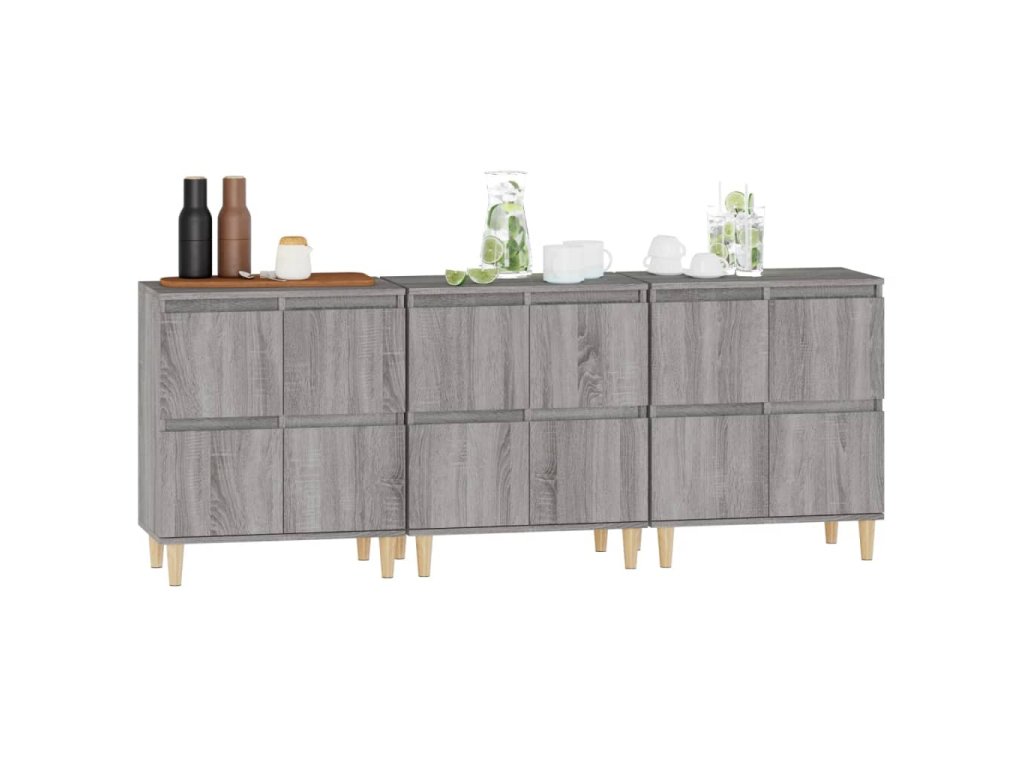 vidaXL Komody 3 ks sivý dub sonoma 60x35x70 cm kompozitné drevo