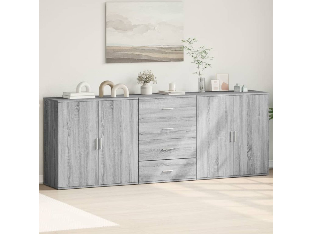 vidaXL Komody 3 ks sivý dub sonoma spracované drevo