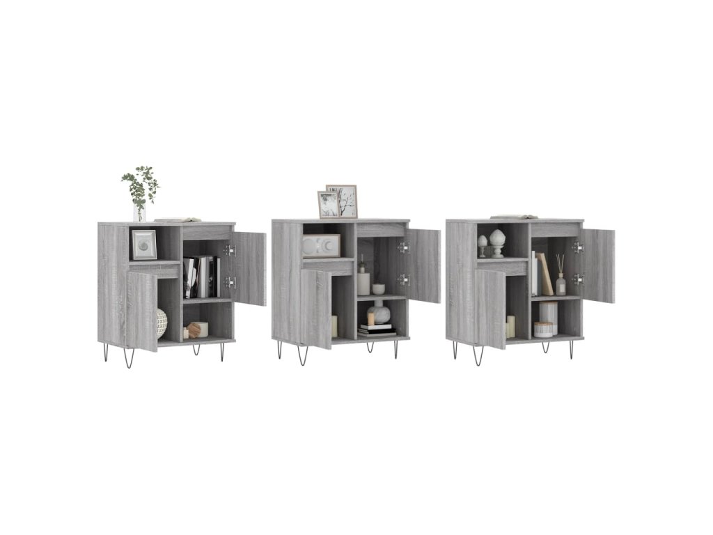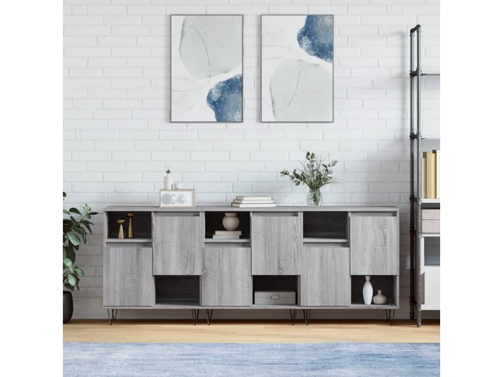 vidaXL Komody 3 ks sivý dub sonoma spracované drevo