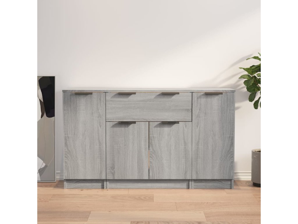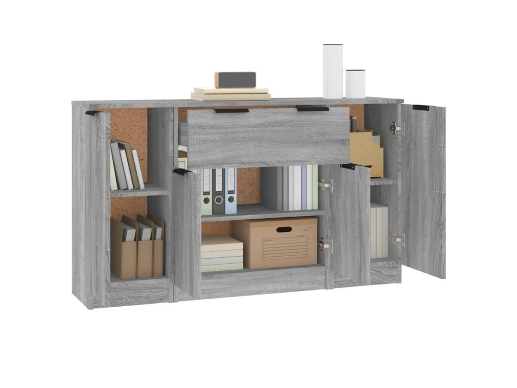 vidaXL Komody 3 ks sivý dub sonoma spracované drevo