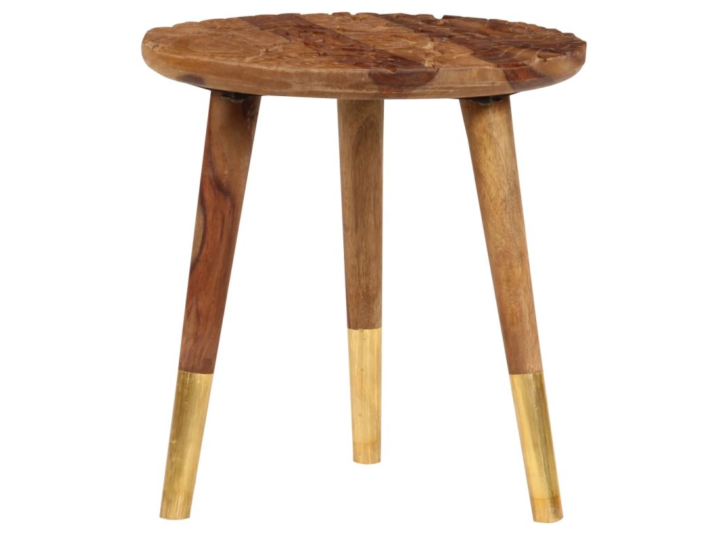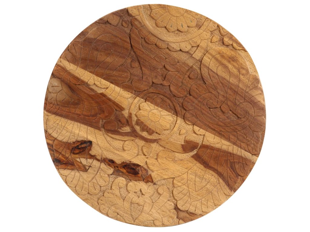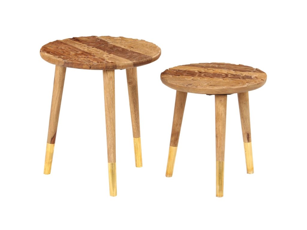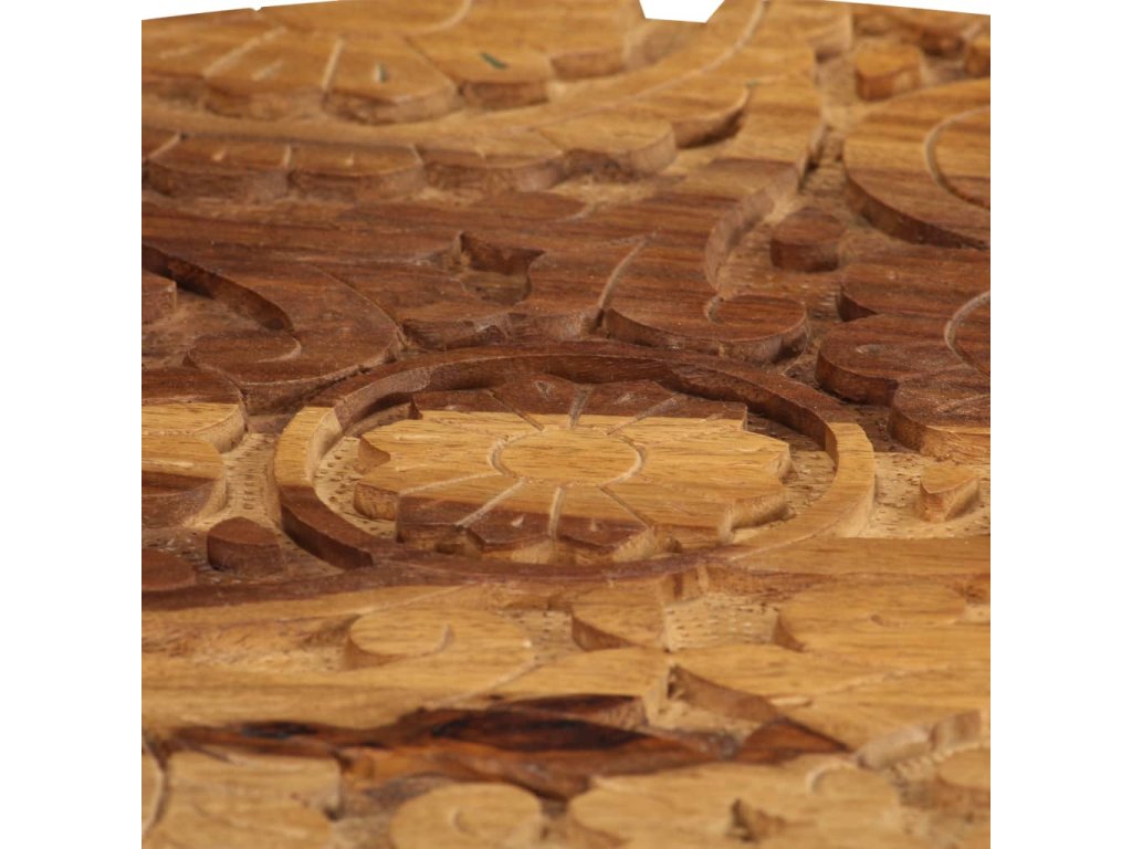 Tieto robustné drevené stolíky sú vyrobené z dreveného masívu, vďaka čomu sú trvácne a krásne. Každý krok výrobného procesu sa vykonáva s najväčšou starostlivosťou, či už je to leštenie, natieranie alebo lakovanie. Vďaka vynikajúcemu remeselnému opracovaniu a krásnej textúre dreva je každý kus nábytku jedinečný a trochu odlišný od ostatných. Povrch stolíka zdobia krásne rezby, a tak celá súprava nábytku pôsobí kreatívne a krásne. Stolíky sa jednoducho montujú.