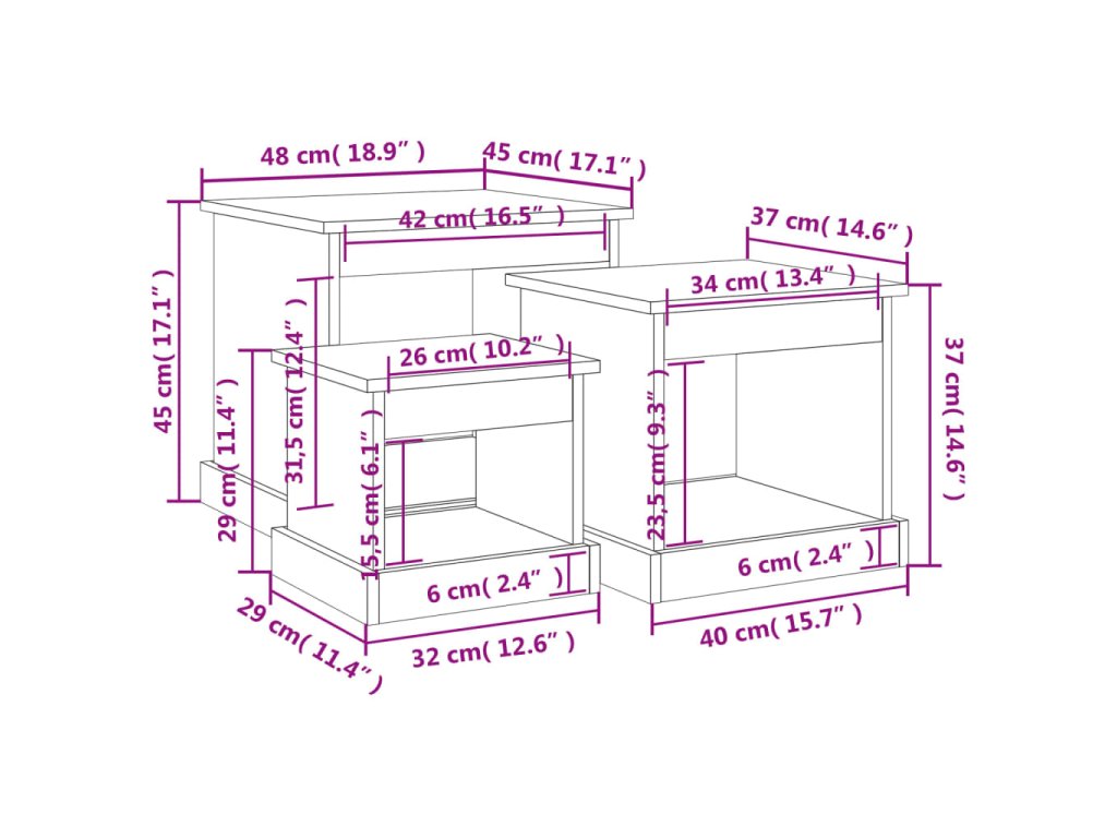 - Všestranné funkcie: Táto sada 3 stolíkov je naozaj všestranná! Ktorýkoľvek z nich môžete využívať aj ako nočný stolík v spálni či príručný stolík alebo stolík ku gauču v obývačke a kancelárii.