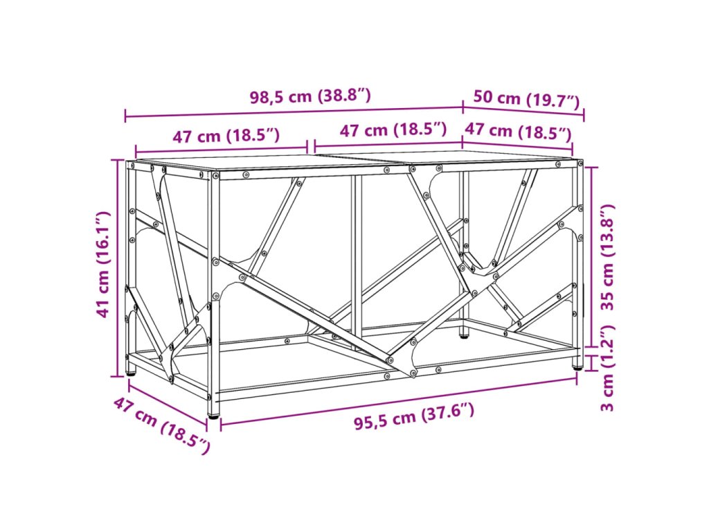 - Pevný a stabilný rám: Nerezový rám obývačkového stola zaručuje pevnosť a stabilitu.