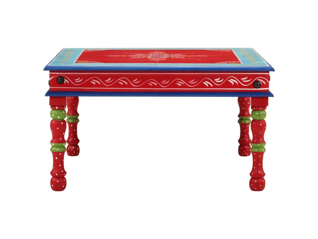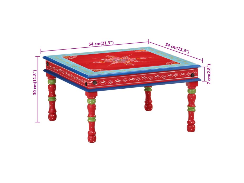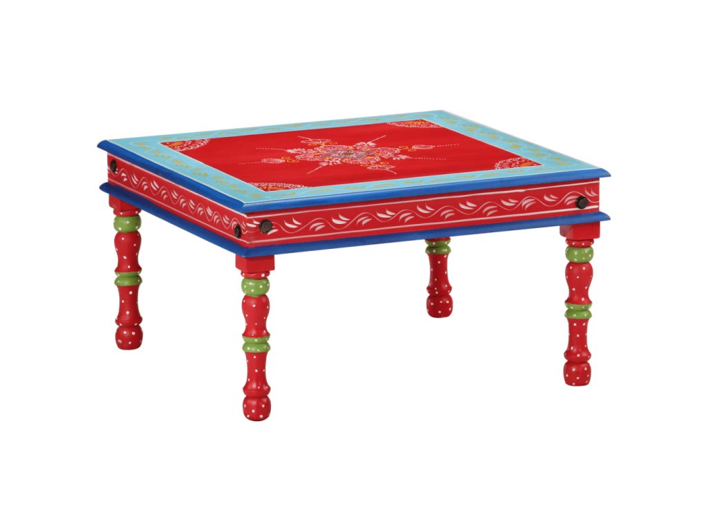 vidaXL Konferenčný stolík, červený, ručne maľovaný, mangový masív