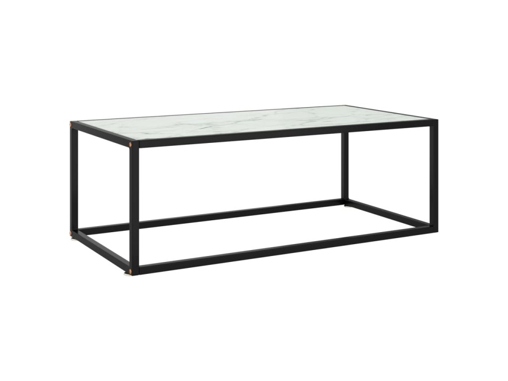 vidaXL Konferenčný stolík, čierny, biele mramorové sklo 100x50x35 cm