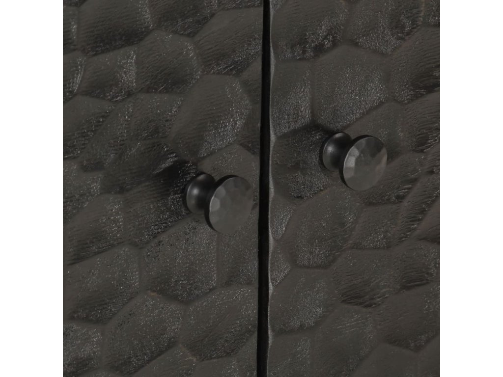 - Materiál: Mangový masív morený načierno, kompozitné drevo, železo