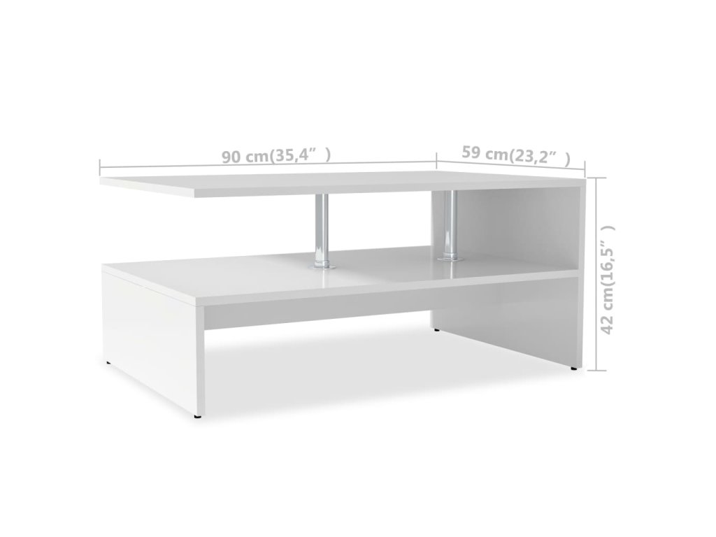 vidaXL Konferenčný stolík, drevotrieska, 90x59x42 cm, biely