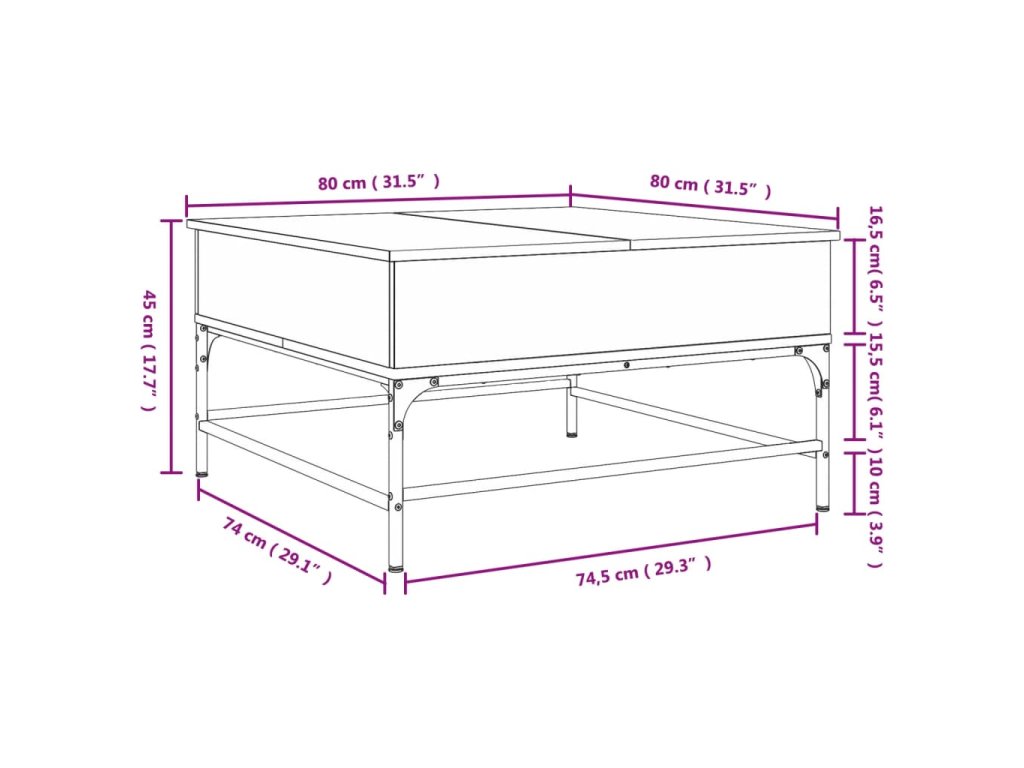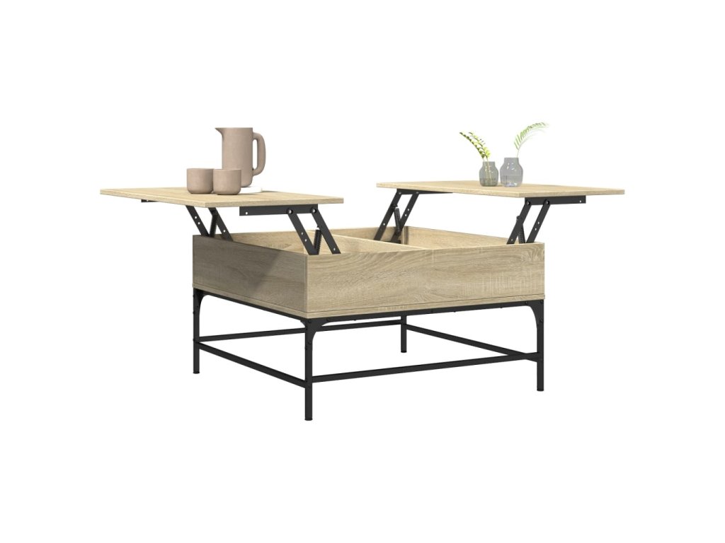 vidaXL Konferenčný stolík, dub sonoma 80x80x45cm, kompozitné drevo+kov