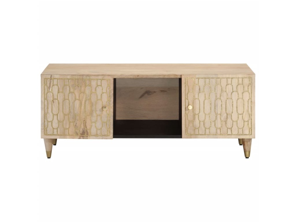- Ručne vyrezávaný dizajn: Tento stredový stolík s ručne vyrezávanými vzormi vnesie do vášho interiéru luxusný elegantný šarm a stane sa ústredným bodom vašej izby.