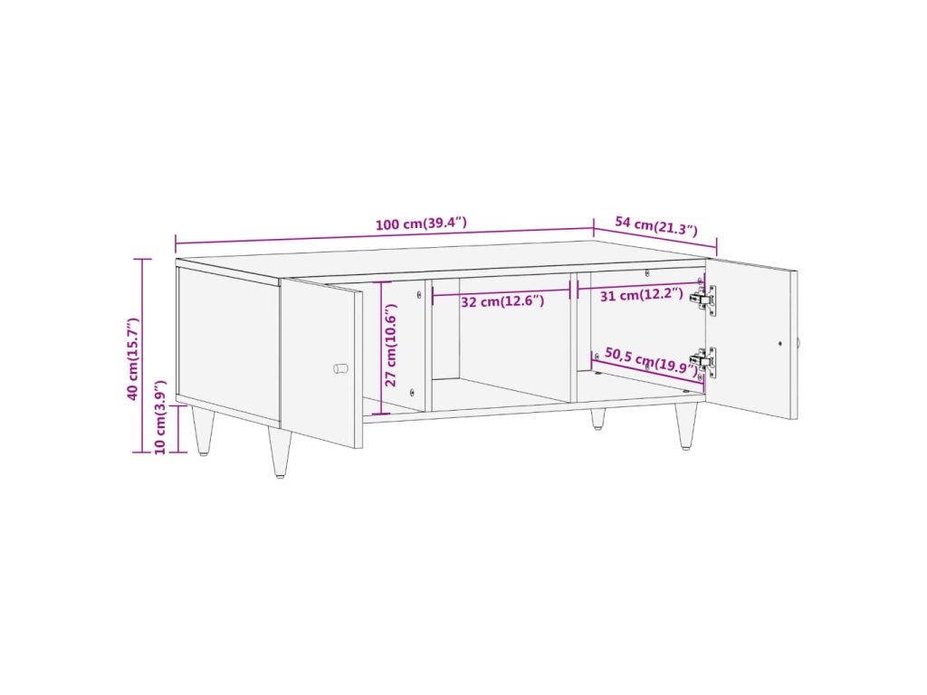 vidaXL Konferenčný stolík 100x54x40 cm, mangový masív