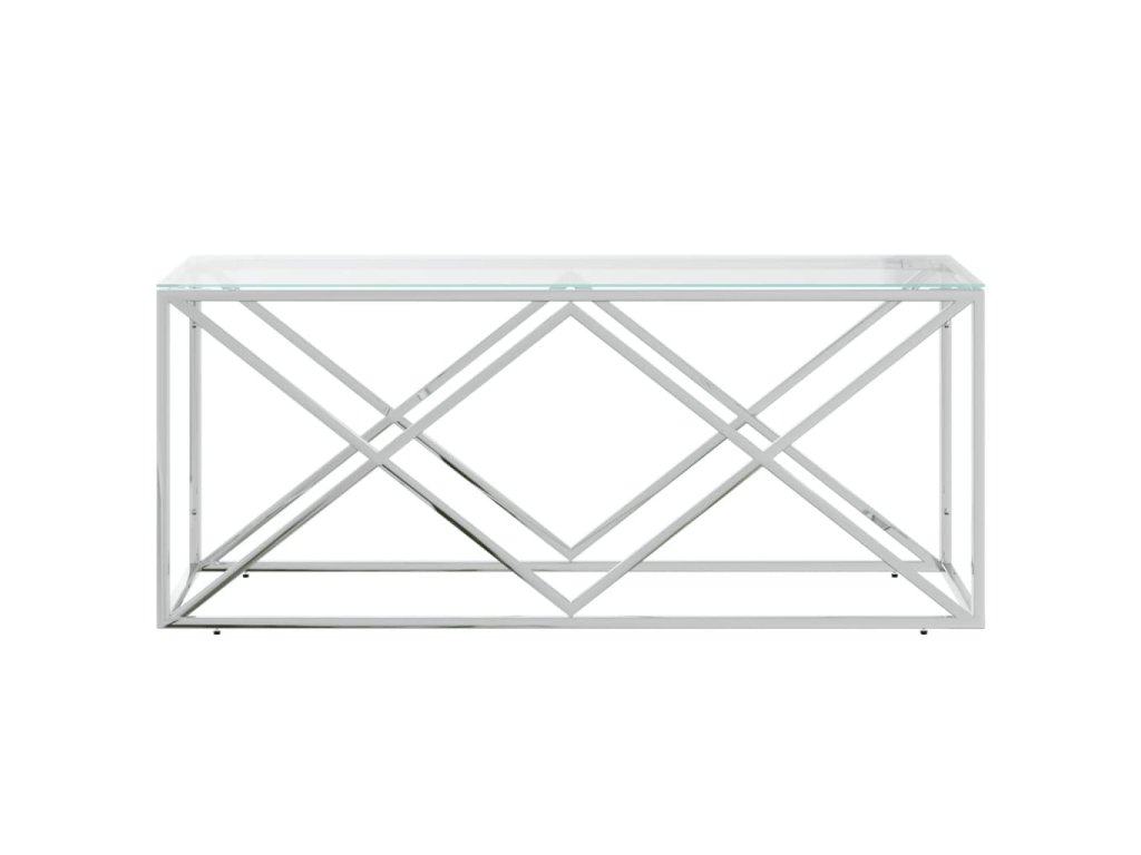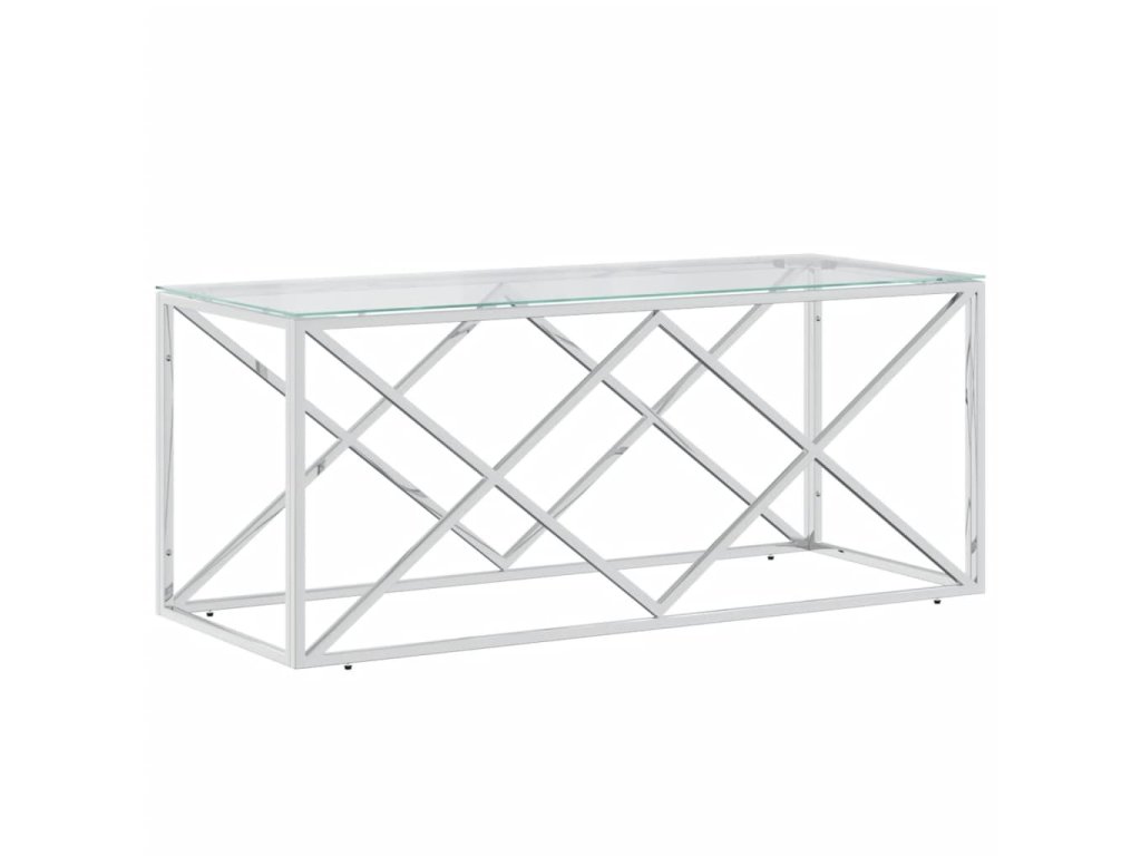 vidaXL Konferenčný stolík 110x45x45 cm nehrdzavejúca oceľ a sklo