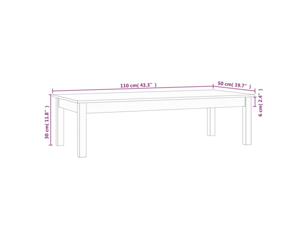 vidaXL Konferenčný stolík 110x50x30 cm borovicový masív