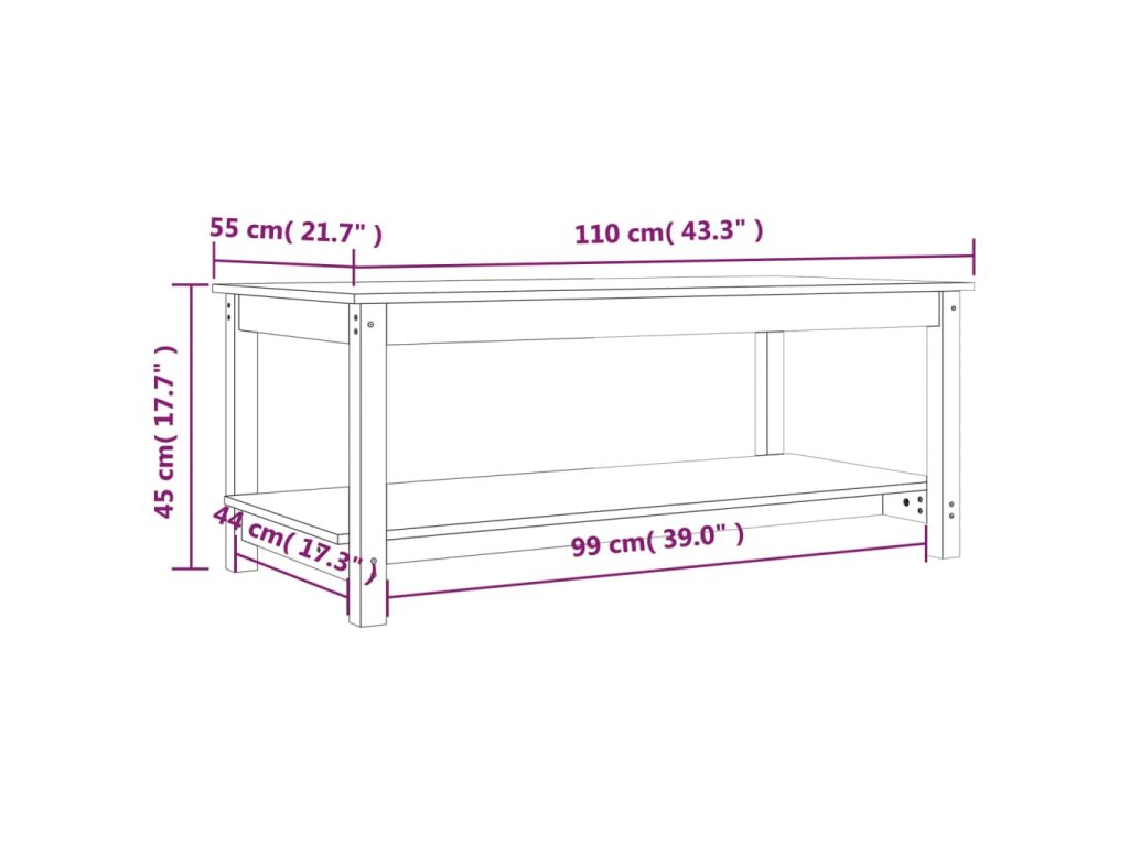 vidaXL Konferenčný stolík 110x55x45 cm borovicový masív